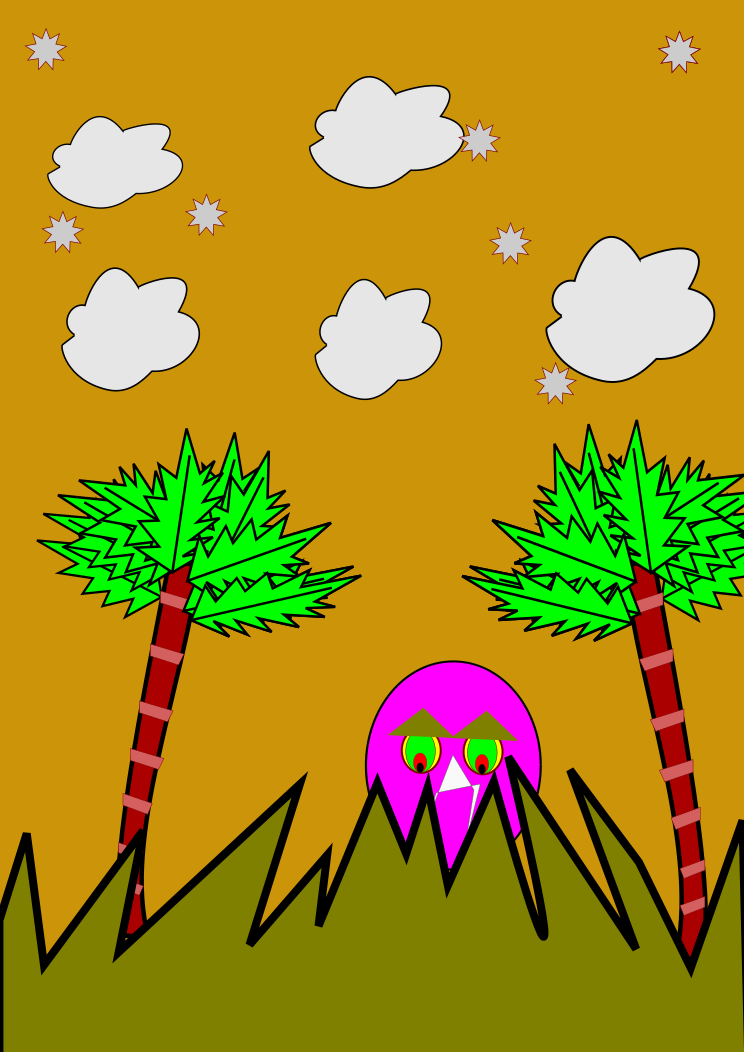 Tags: cloud, palm tree, pink ball