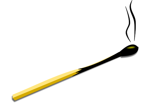This features a close-up of a wooden match stick, with the top part being black to indicate that it has already been burned. The matchstick is positioned in front of a white background, which provides a clean and uncluttered appearance. This simple yet striking illustration effectively captures the essence of a match stick without any unnecessary distractions or elements.