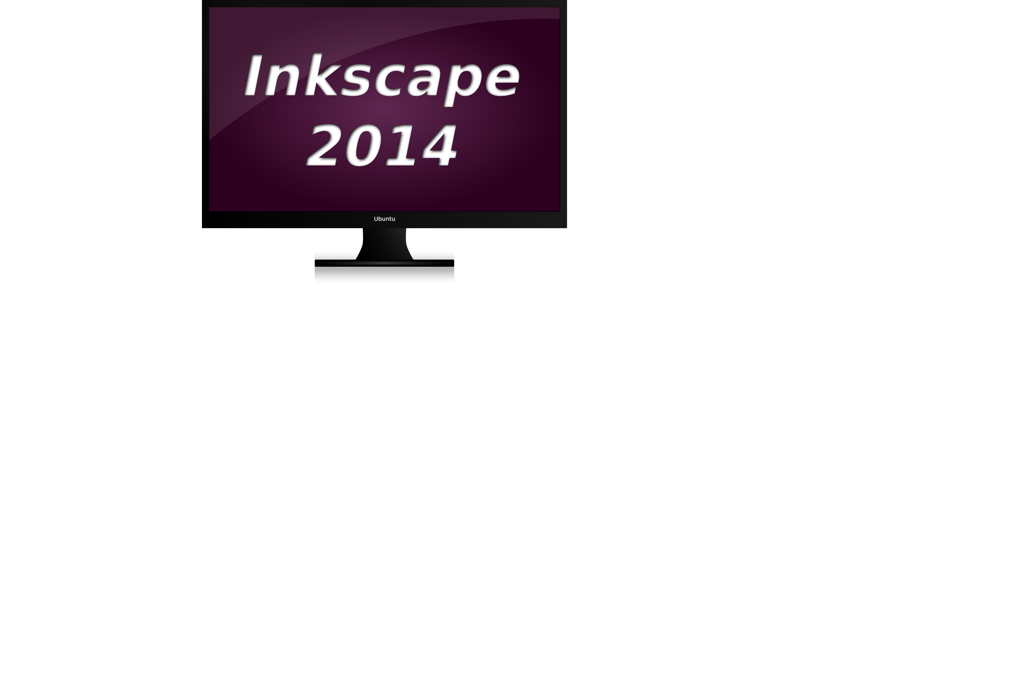 This features a computer monitor with the words "Inkscape 2014" displayed on it. The screen is positioned in the upper left corner of the frame, and its size fills most of the space within the image. The background behind the monitor appears to be white, creating a clean and minimalist appearance.