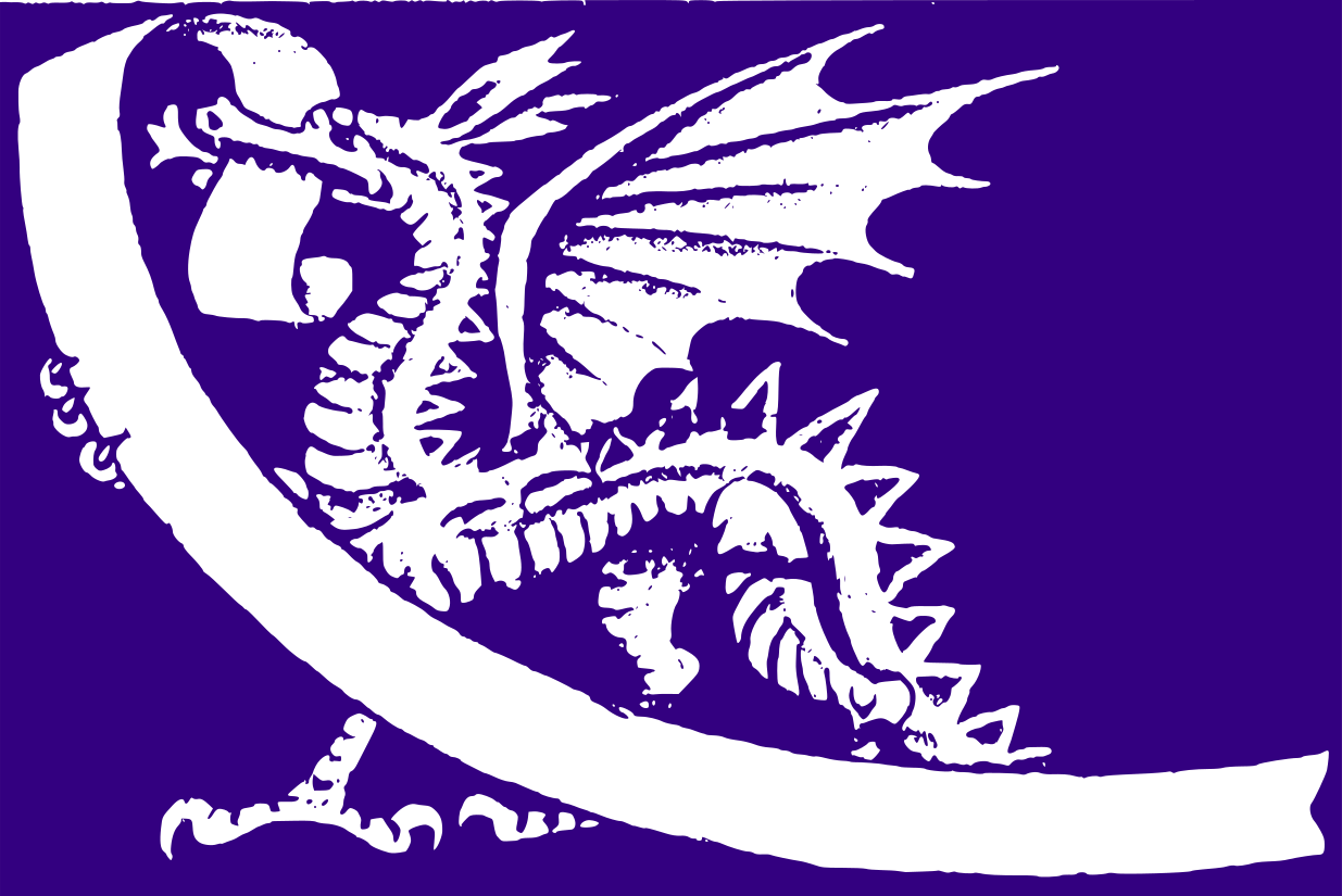 This features a white dragon with purple wings, standing on its hind legs and holding a scroll in its mouth. The dragon's wings are spread out, giving it an impressive appearance. The background is a dark shade of purple, which contrasts nicely with the white dragon. This illustration creates a sense of depth and intrigue, as the viewer can appreciate both the dragon's features and the scroll it holds in its mouth.