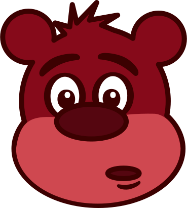This features a cartoon-like drawing of a teddy bear with big, round eyes and a red nose. The bear's mouth is open, giving it an expressive appearance. The bear has two small black dots for eyes, which adds to its cute and playful nature. The overall design of the image gives off a fun and whimsical vibe, making it suitable for various applications such as children's books or greeting cards.