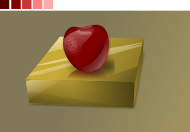 This features a small red heart-shaped box sitting on top of a larger yellow box. The red heart is placed in the center of the yellow box, creating an eye-catching contrast between the two colors. The scene appears to be set against a brown background, which adds depth and warmth to the overall composition.