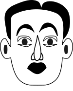 This features a black and white drawing of a man's face with a surprised expression. The man has a prominent nose, which is the focal point of his facial feature. His eyes are wide open, giving him an intense look. The drawing captures the essence of surprise in a simple yet effective manner.