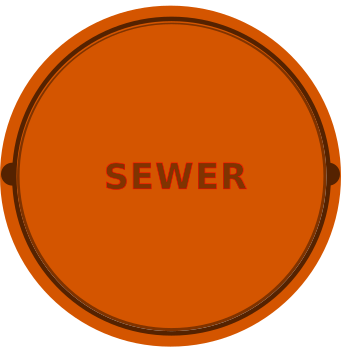 This features a round, orange object with the word "Sewwer" written on it. This could be an access cover for underground utilities or a manhole cover. The color of the object is predominantly orange, giving it a distinctive appearance. The word "Sewwer" is displayed in white letters, making it easy to read and understand its purpose.