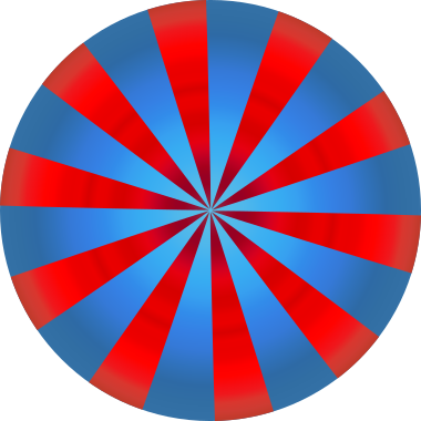 This features a large, colorful circle with a blue background. The circle is adorned with red and blue stripes that create an eye-catching pattern. These stripes are arranged in such a way that they form a spiral or swirl around the center of the circle. The combination of colors and patterns gives the image a vibrant, lively appearance.