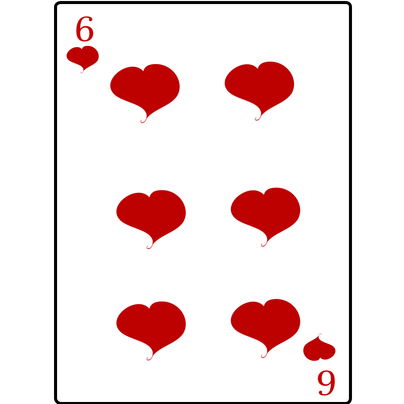 This features a deck of cards with the number 6 and hearts on them. There are six red hearts in total, each one placed at different positions across the card. The hearts are arranged in such a way that they cover most of the visible surface area of the card, creating an eye-catching pattern. This unique design makes it stand out from traditional playing cards with only numbers and suits on them.