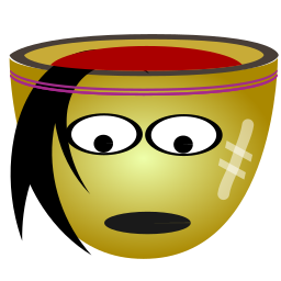 This features a cartoon-like face with a big, round head and two eyes. It appears to be an anthropomorphic cup or bowl, possibly made of ceramic material. The face has a frowning expression, giving it a somewhat sad appearance. The design is reminiscent of the popular "Sweet Cup" character, which adds a playful touch to the overall image.