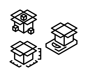 This features four different icons representing boxes, each with varying sizes and shapes. These icons are black and white in color, giving them a classic appearance. They appear to be used as symbols or illustrations for packaging or shipping purposes. Each icon is placed on top of one another, creating an interesting visual effect that highlights the differences between the four boxes. The arrangement of these icons suggests they may be part of a larger collection or set.