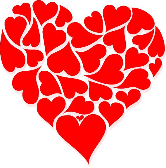 This features a large red heart made up of smaller hearts. These smaller hearts are arranged in various positions, creating an intricate and visually appealing design. The hearts are scattered throughout the entirety of the image, with some located near the top left corner, others in the middle section, and a few more towards the bottom right side. This unique heart design showcases creativity and attention to detail, making it an interesting focal point for any artistic or decorative project.