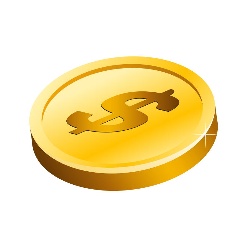 This features a close-up of a gold coin with the dollar sign on it. The coin is shiny and has a yellow hue, giving it an appealing appearance. It appears to be a realistic representation of a coin, capturing its details and texture. The coin's design includes the dollar sign in the middle, making it easily recognizable as a currency item.