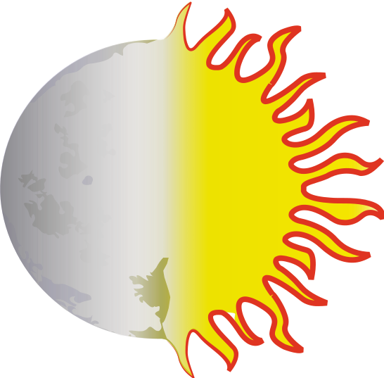 This features a sun and moon as one, with the sun on the right side of the picture and the moon on the left. The sun is depicted in yellow, while the moon appears to be white. The sun and moon are positioned close together, creating an interesting visual effect. In addition to these celestial bodies, there is a globe visible in the background, adding depth and context to the scene.