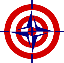 This features a red and blue target with a white circle in the middle. This target is reminiscent of a Nato logo, which has a four-pointed star. The star is blue in color, with the center having a circle target shape. The star is placed on a dark board, creating an eye-catching contrast between the colors and background.