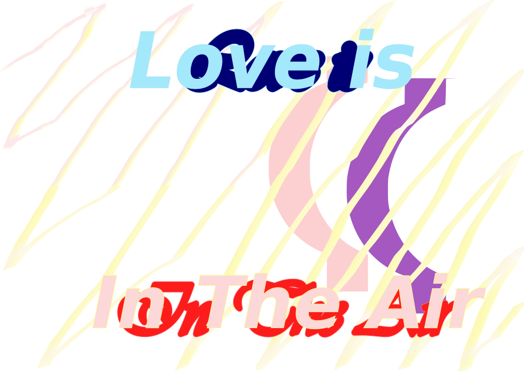 This features a brightly colored and vibrant design with the words "Love is in the air" written across it. The background of the image has a yellowish hue, giving it an overall warm and inviting appearance. The text appears to be written in red, making it stand out against the backdrop. This cheerful message could be used as a motivational or uplifting reminder for someone's day, encouraging them to spread love and positivity around them.