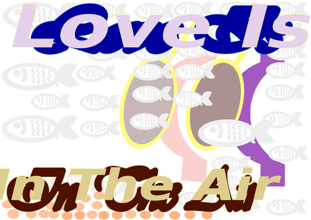 This features a colorful and vibrant design with the words "Love is in the air" written on it. The background consists of various fish, including parrot fish, puff fish, clown fish, and other exotic species. These fish are scattered throughout the scene, creating an eye-catching display. The overall theme of the image suggests a fun and lively atmosphere, perfect for sending as an E-card to friends or loved ones.