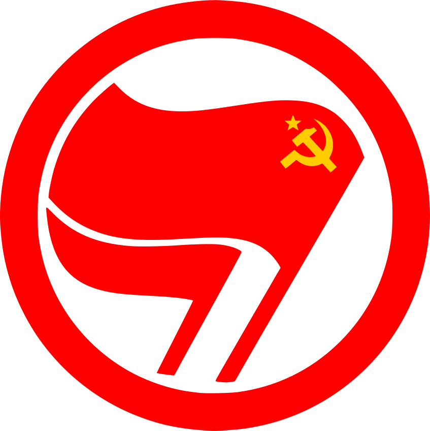 This features a red circle with an illustration of a hammer and sickle, which is the symbol for communism. The hammer and sickle are located in the center of the circle, surrounded by a white background. This design could be used as a logo or emblem to represent communist ideals or values.
