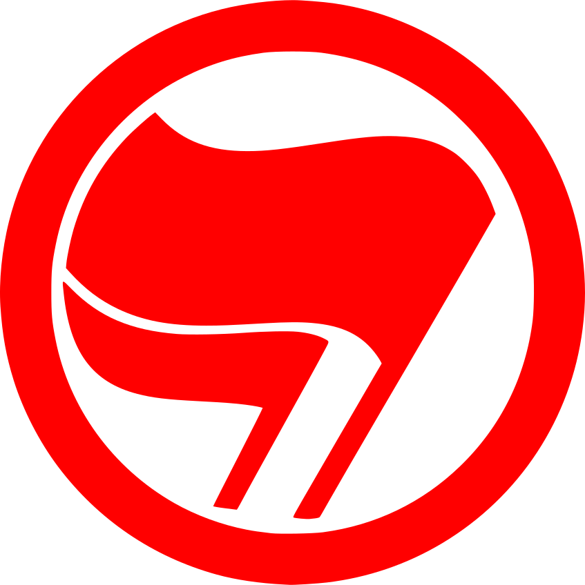 This features a red circle with an anti-fascist flag logo. The logo is designed to represent the struggle against fascism and has a distinctive red outline. The circle itself is also red, creating a bold and eye-catching visual effect. This symbol can be used as a representation of solidarity or support for those who stand against fascist ideologies and movements.