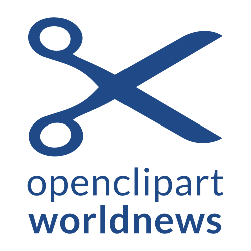 This features a blue and white logo for Openclipart Worldnews. This logo is comprised of two scissors, one on the left side and another on the right side, with a blue background. The scissors are positioned in such a way that they appear to be cutting through the word "world" within the logo. The overall design gives an impression of a modern and professional appearance for this news-related clipart service.