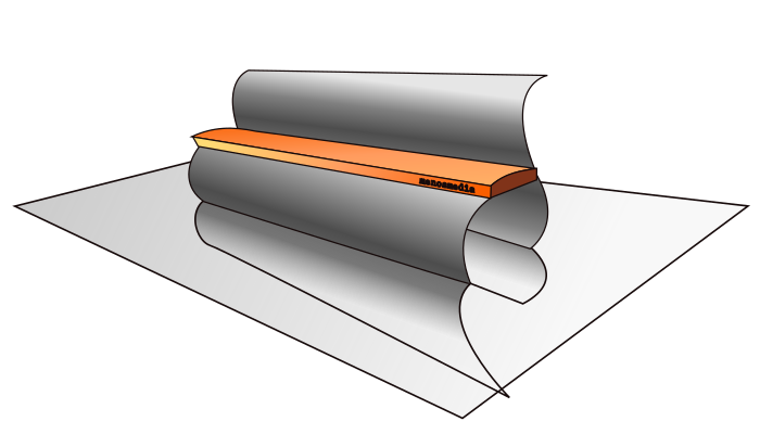 This features a large piece of paper with a roll of tape on top. The roll of tape is orange and yellow, making it stand out against the white background. The paper appears to be a sheet of graph paper, which is commonly used for drawing or measuring purposes. The roll of tape sits prominently in the center of the image, occupying a significant portion of the space.