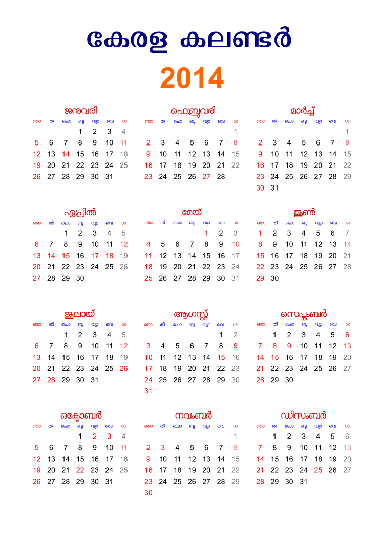 This is a calendar for the year 2014. It features a red color scheme with the months arranged in three rows and four columns. Each month has its name displayed, making it easy to identify which month corresponds to each day of the year. The calendar is written in a foreign language, indicating that it may be intended for a specific region or audience. Overall, this calendar provides a clear and organized way to keep track of important dates throughout the year.