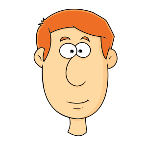 This features a cartoon drawing of a man with red hair and an orange beard. He has big eyes, giving him a friendly appearance. His head is the only part of his body visible in the picture. This character seems to have been drawn for entertainment purposes or as a representation of a specific personality trait. The artistic style used for this drawing gives it a unique and engaging look that captures the viewer's attention.