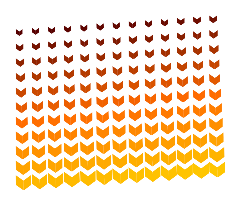 This features a pattern made up of numerous orange cubes arranged in various shapes and sizes. The cubes are placed on top of each other, creating an interesting visual effect. The arrangement starts with smaller cubes at the top and gradually increases in size as they move downwards. This unique design creates a sense of depth and intrigue, making it an eye-catching pattern that stands out from typical geometric shapes.