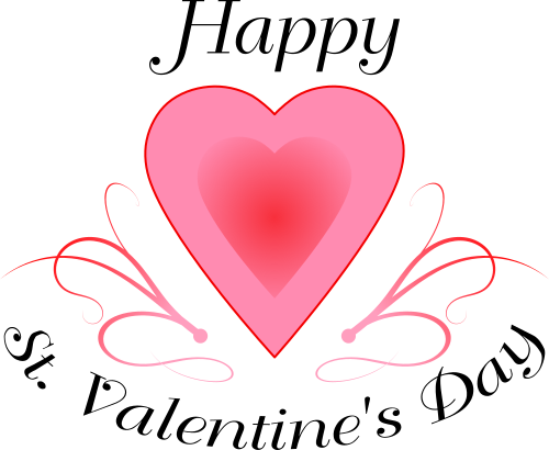 This features a heart-shaped sign with the words "Happy St. Valentine's Day" written on it. In the middle of the words, there is a pink heart with a design around it, adding to the festive atmosphere. The heart shape and the words together create an appealing visual representation of the holiday, making it perfect for use as a decoration or gift card.
