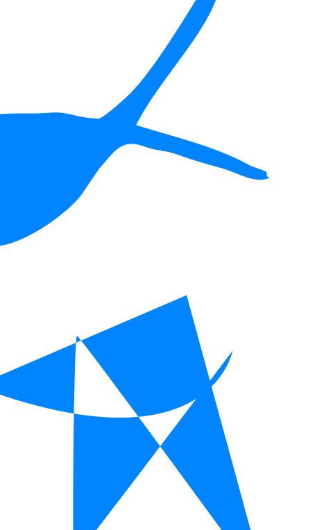 This features a blue and white design with various geometric shapes. There are two main objects in the scene, one being a large blue spoon and the other being an abstract shape that resembles a chair or a sculpture. These objects are placed on top of each other, creating a visually interesting composition. The overall color scheme is predominantly white with some blue accents, giving the design a clean and modern appearance.