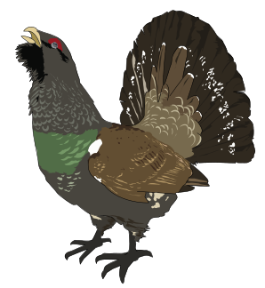 This features a colorful bird with a long tail feathered like a fan. It has a green and brown body, along with an orange beak. The bird is standing on one leg, giving it a unique appearance. Its head is raised in the air, possibly indicating that it's alert or curious about its surroundings. This bird appears to be a part of a colorful drawing or painting, adding vibrancy and life to the scene.