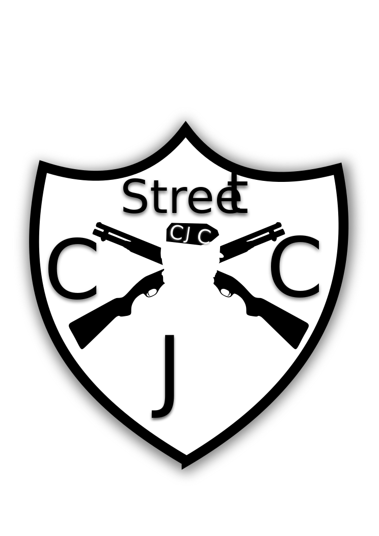 This features a black and white logo for Street & J C. The logo is composed of two guns, one on the left side and another on the right side, with the words "Street & J C" written below them in white. The design gives off an impression of a shield or a badge, representing the company's branding.