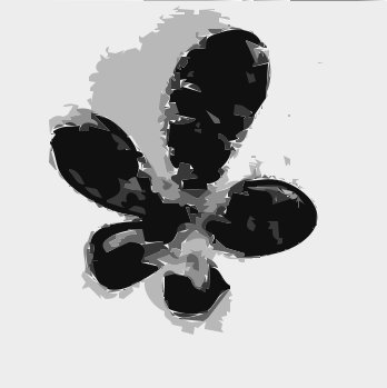 This features a black and white photo of an earring. The earring is shaped like a four-leaf clover, with each leaf having a distinct shape. The overall design gives the impression that it could be a piece of jewelry or an artistic representation of a four-leaf clover. The image captures the intricate details of this unique and eye-catching earring design.