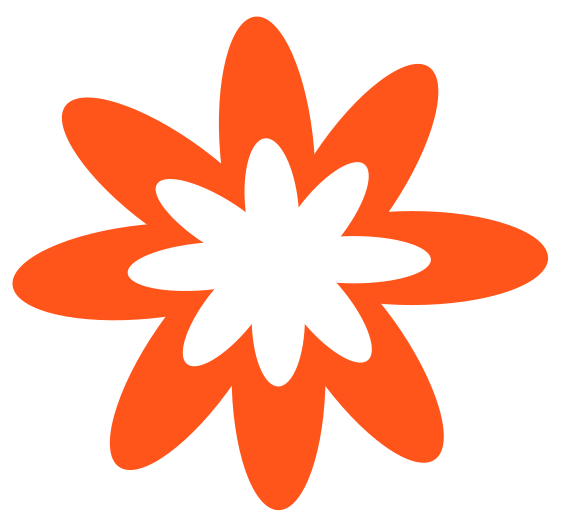 This features a large, bright orange flower with white petals. It is an eye-catching and vibrant design that stands out against the background. The flower's shape is unique, giving it a distinctive appearance. This colorful flower could be used as a decorative element in various settings or even as part of a logo for a business related to flowers or gardening.