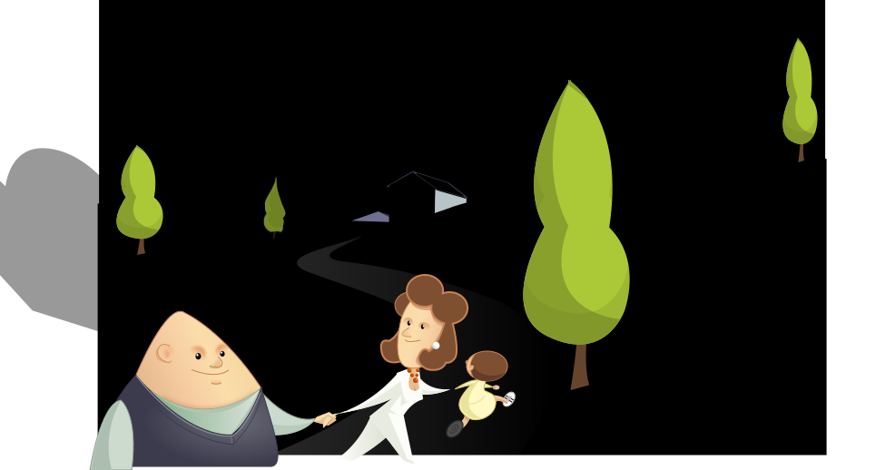 Tags: cartoon, child, cloud, family, father, house, kid, landscape, man, morning, mother, person, tree, woman, walking family
