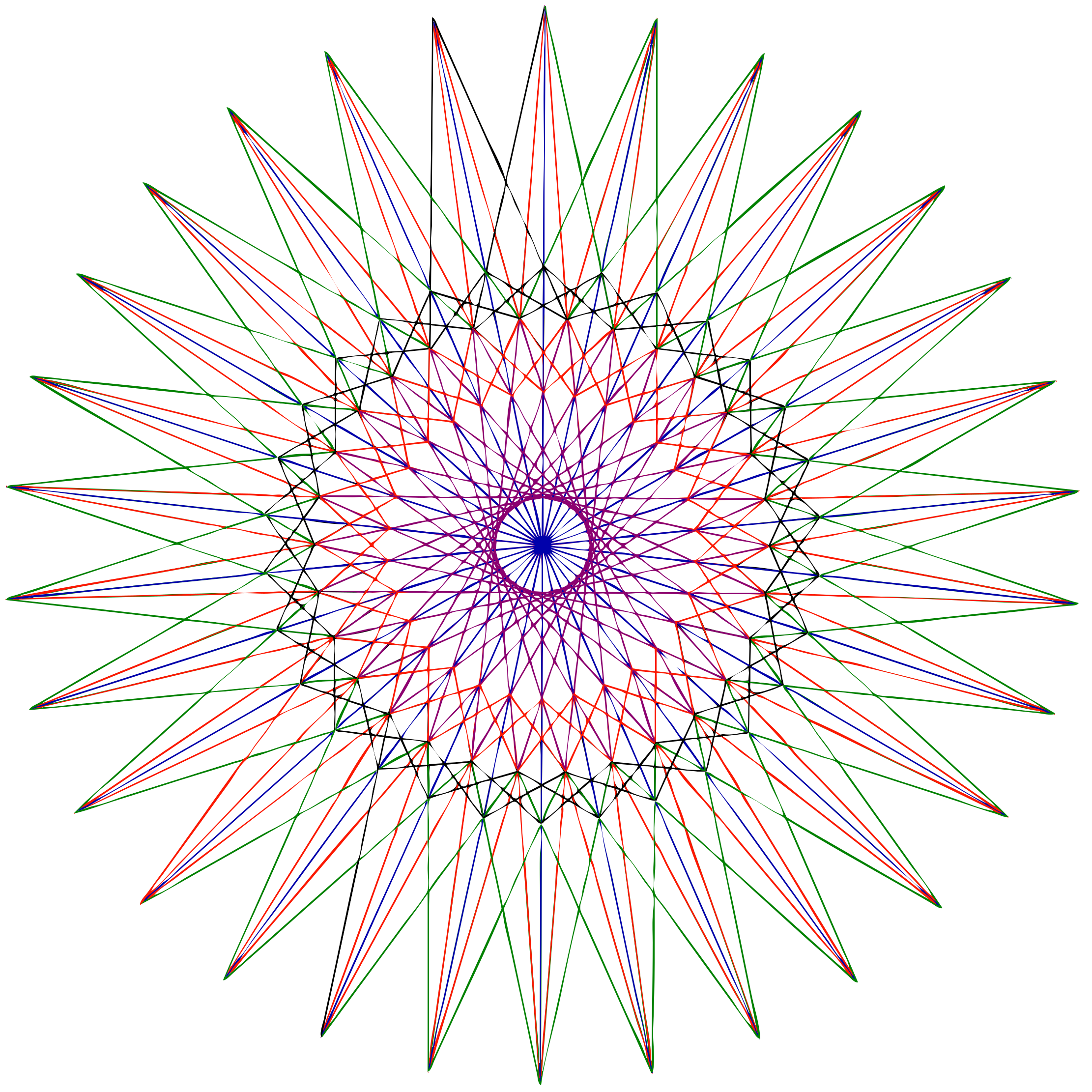 This features a large, colorful star with many points and an abstract design in the middle. The star is composed of various colors, including red, green, blue, yellow, and purple. These colors are arranged in a way that creates a visually striking pattern, making it an interesting and unique piece of artwork. The star's intricate design and vibrant colors make it stand out as a captivating focal point within the image.