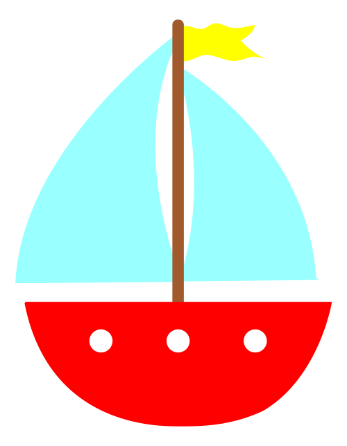 This features a red sailboat with two light blue sails. The top of the ship has a small yellow flag attached to it, adding a touch of color and detail to the scene. The boat is depicted in a simple yet appealing manner, making it an attractive visual representation of a sailing vessel.