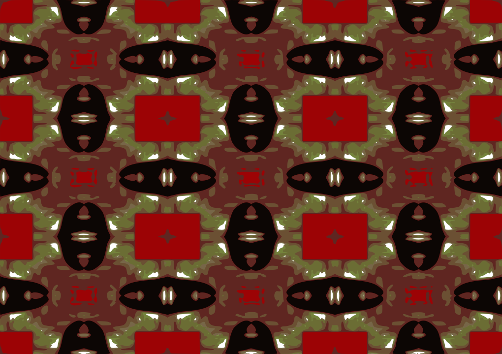 This features a red and black patterned design with various shapes, including circles and triangles. These shapes are arranged in a way that creates an interesting visual effect. The overall composition of the design is quite intricate, making it visually appealing. The colors used in this pattern are predominantly red and black, which adds to its bold and striking appearance.