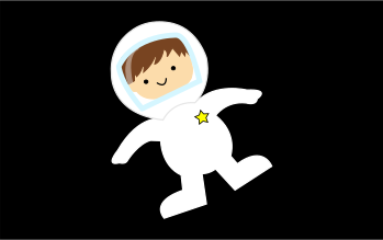 This features a cartoon astronaut in a white suit, floating through space. He is smiling and appears to be enjoying his journey. The astronaut's suit is adorned with a star, adding an extra touch of detail to the character. The background is black, which emphasizes the astronaut as the main focus of the image. This whimsical illustration captures the essence of space exploration and adventure in a fun and lighthearted manner.