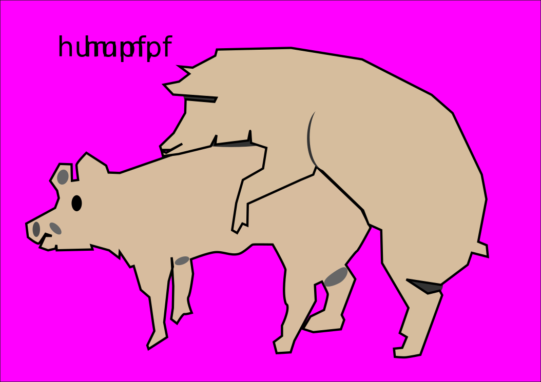 This features a cartoon drawing of two pigs engaging in sexual activity. One pig is positioned on top of the other, with both animals appearing to be enjoying their time together. The scene takes place against a bright pink background that contrasts nicely with the brown tones of the pigs' bodies. The image captures an unconventional and humorous moment between these two anthropomorphic characters.