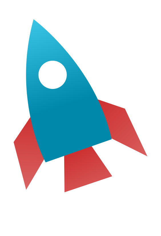 This features a blue and red rocket ship, which is the main focus of the picture. It appears to be an iconic symbol or logo for space exploration. The rocket has a prominent red tail with a white tip, making it stand out against the blue background. The overall design gives off a sense of adventure and excitement, as one would expect from a space-themed image.