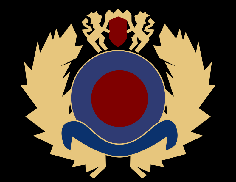 This features a logo with an emblem in the center, surrounded by a blue circle. The emblem is red and gold, giving it a striking appearance. There are also two people visible within the design of the logo, one on the left side and another on the right side. These figures appear to be part of the overall decorative element of the logo. The combination of colors and intricate details make this logo visually appealing and unique.