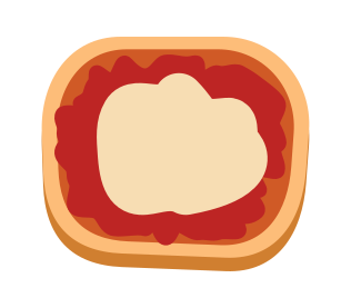 This features a square-shaped piece of toast with a red substance on it, possibly resembling pizza. The toast is placed in the center of the frame and appears to be the main focus of the image. The red substance covers most of the surface area of the toast, giving it an appetizing appearance.