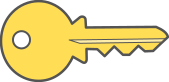 This features a yellow key with black outlines, placed horizontally. It is a large and prominent symbol of the key, taking up most of the space in the image. The key appears to be made of gold material, giving it an elegant and luxurious appearance. This key could represent a sense of security or access to something valuable, as keys are often used for unlocking doors or safes.