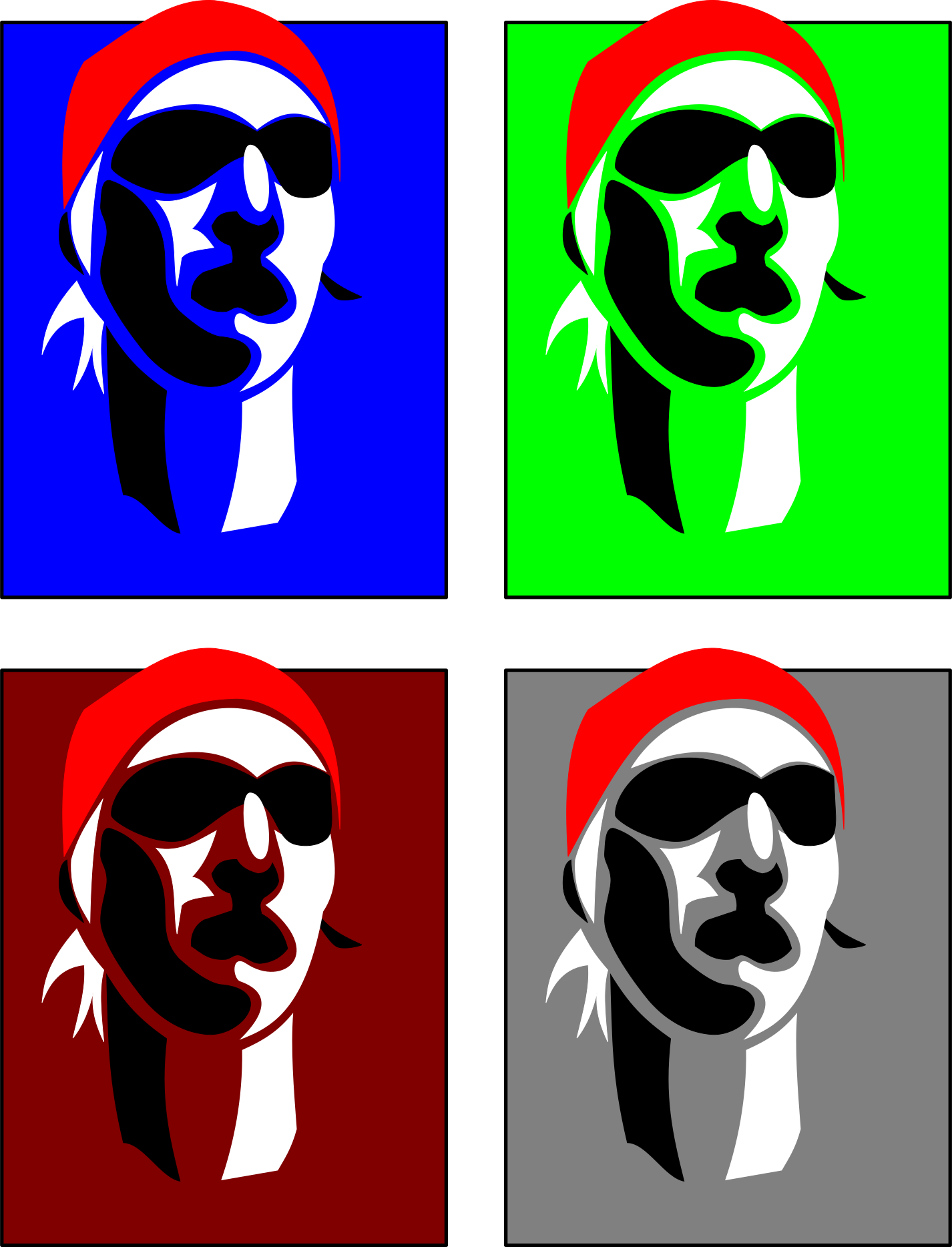 This is a collage of four different pictures featuring the same person wearing sunglasses. Each picture has a slightly different color, with one being red, another blue, and two others green. The person in each picture appears to be making a funny face or expression, adding humor to the overall composition. The images are arranged side by side, creating an interesting visual effect that highlights the similarities between them while also showcasing their unique color variations.
