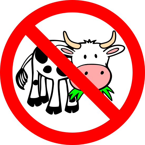 This features a red and white sign with a cow drawn on it. The cow is depicted in comic style, eating grass, and the sign indicates that this activity is not allowed or prohibited. The cow's face appears to be smiling, adding a playful touch to the scene. The sign serves as a warning for those who may attempt to engage in such activities, ensuring safety and adherence to rules.