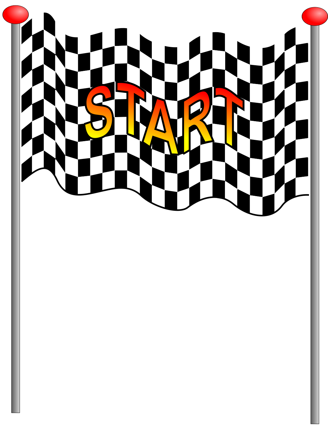 This features a checkered flag with the word "Start" written on it. The flag is waving in the wind, giving it an animated appearance. The flag has two poles attached to it, allowing for easy display and movement. This banner could be used as a decorative piece or to signal the beginning of an event or competition. The combination of the checkered pattern and the bold word "Start" creates a visually appealing and attention-grabbing design.