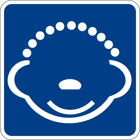 This features a blue and white sign with a smiling face on it. The face is made up of circles, giving the impression that it's smiling at you. The sign appears to be a symbol or logo for something related to dental care, as it has been described as a "tooth" emblem. The overall design and color scheme make this an eye-catching and friendly representation of dental services.