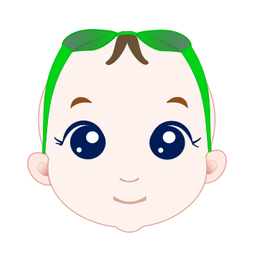 This features a cartoon baby with green hair, wearing sunglasses. The baby has a smiling expression and is looking directly at the camera. The sunglasses are placed on top of the baby's head, adding a playful touch to the scene. The overall appearance of the baby gives off a fun and whimsical vibe.