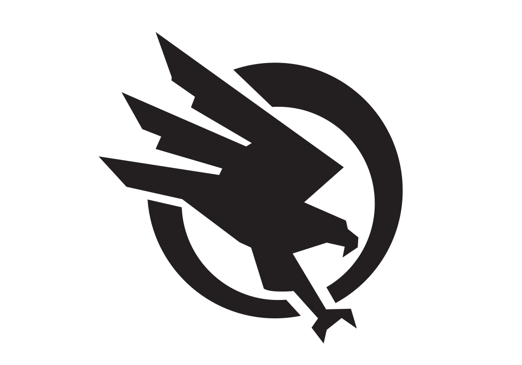 This features a black and white logo of an eagle with its wings spread. The bird is positioned in the center of the logo, surrounded by a circle that adds to the overall design. This symbol appears to be a part of a larger picture or possibly a branding for a company or organization. The eagle's wings are spread wide, giving it an impressive and powerful appearance.