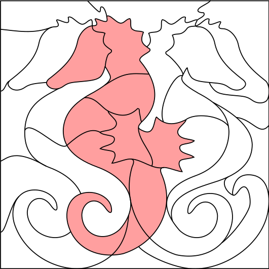 This features a unique and intricate design of three seahorses, each with different colors. One of the seahorses is pink, while the other two are not painted yet. They are all positioned in an artistic manner, creating a visually appealing scene. The seahorses are arranged in such a way that they appear to be interacting or engaging with each other, adding depth and interest to the overall composition of the image.
