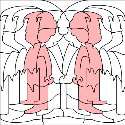 This features a unique and intricate design of two pink-colored characters, resembling children or angels, standing next to each other. They are holding hearts in their hands, adding a touch of love and warmth to the scene. The characters are positioned side by side, with one on the left and the other on the right, creating an interesting visual effect. The overall design is quite detailed, making it an engaging piece for viewers to appreciate.