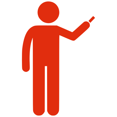 This features a red silhouette of a person standing and pointing with one hand. The figure is positioned in the center of the scene, drawing attention to its unique appearance. The silhouette's outstretched arm and finger suggest that it might be directing or instructing someone else. This could represent an artistic representation of a teacher or another authority figure who uses gestures to communicate effectively with their students or followers.